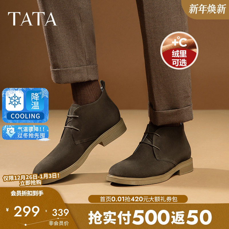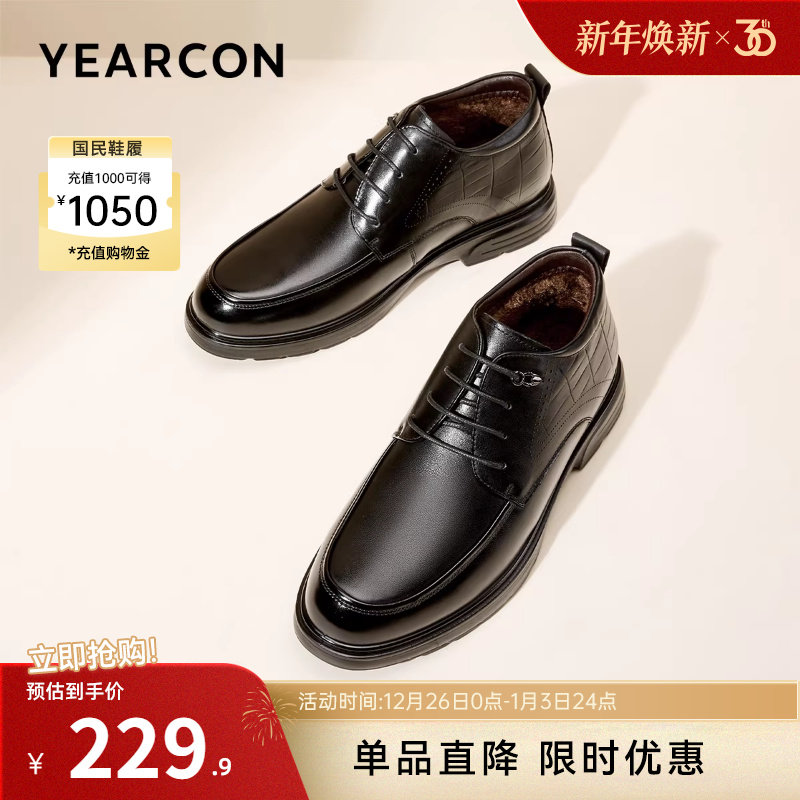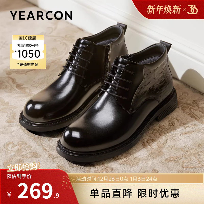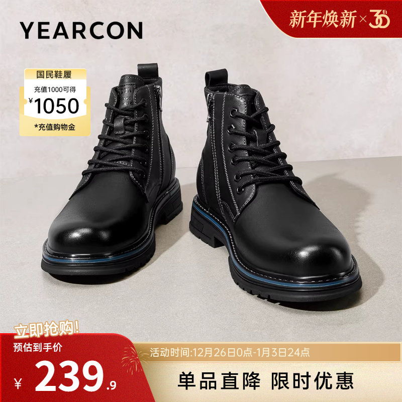 - 真皮加绒马丁靴男