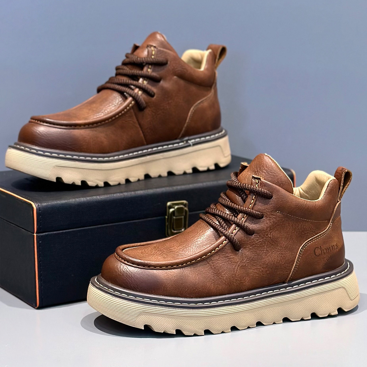 - 真皮英伦靴男