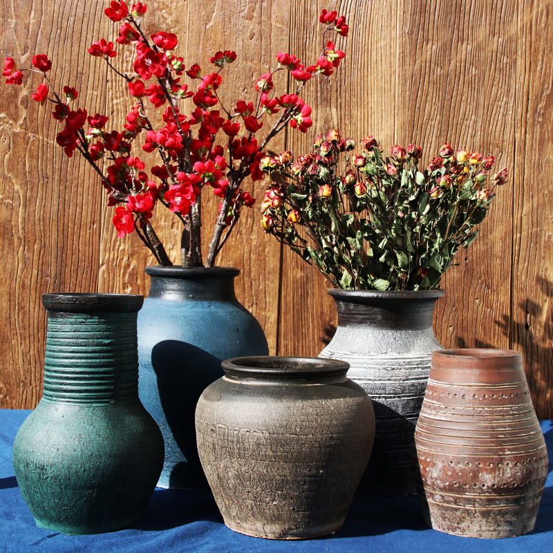 侘寂风土色复古陶罐粗陶花瓶手工艺术花器落地大花盆民宿装饰摆件