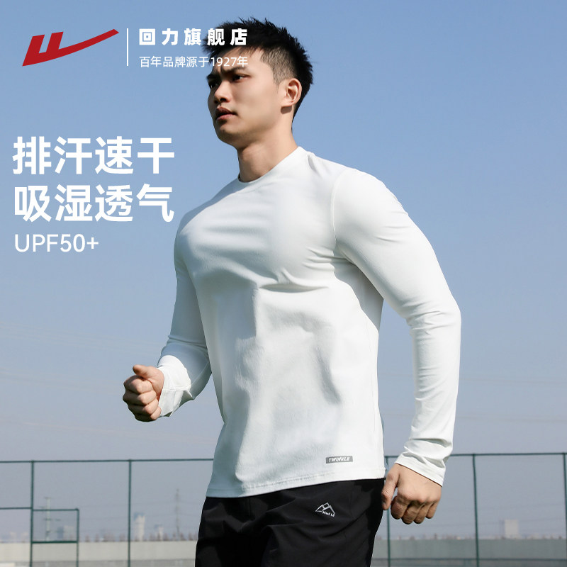 回力速干衣长袖男运动T恤春秋打底衫跑步健身防晒登山训练服上衣
