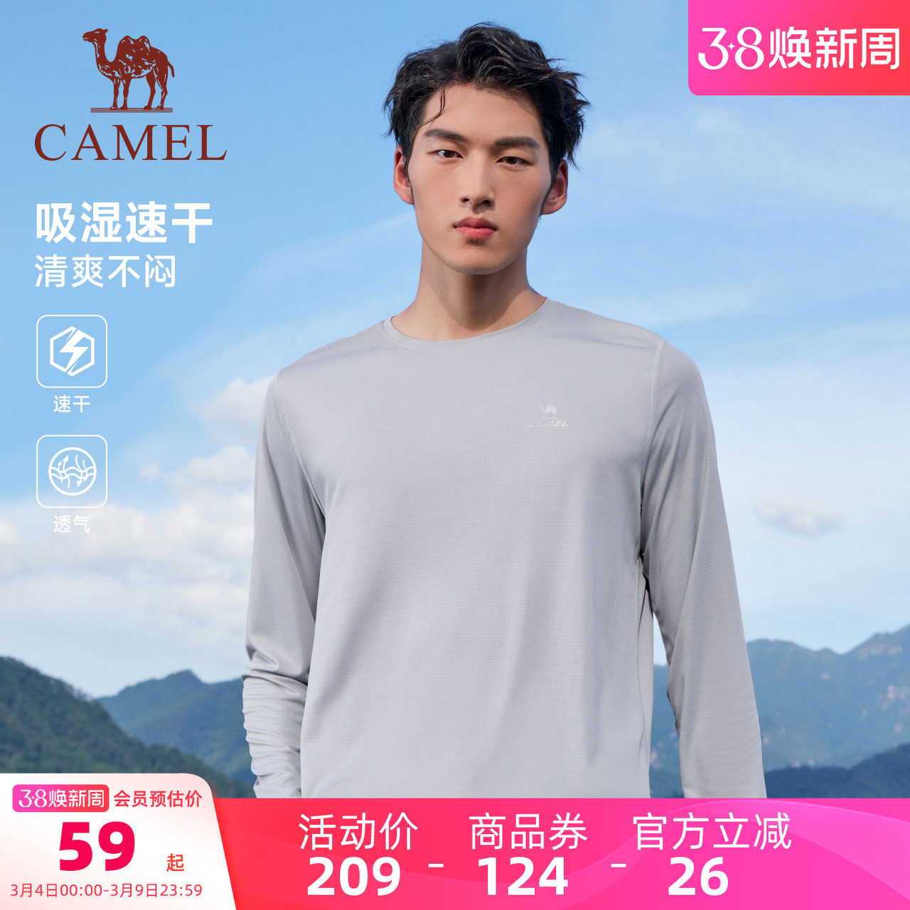 骆驼健身速干长袖T恤男2026夏季新款户外运动轻薄徒步内搭上衣女