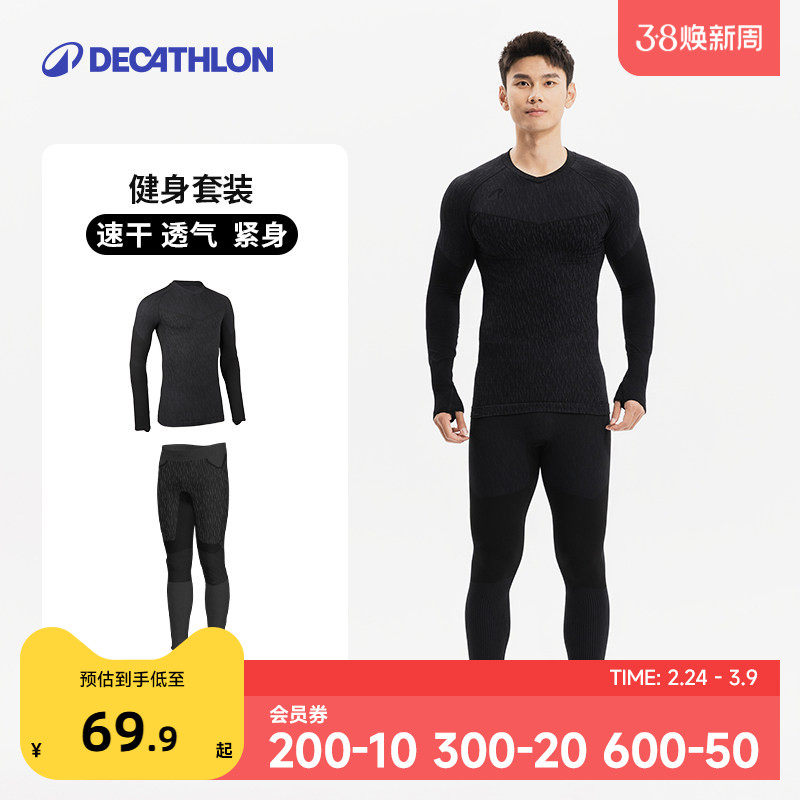 迪卡侬紧身衣男跑步运动套装健身服足球篮球长袖训练服速干衣SAT2