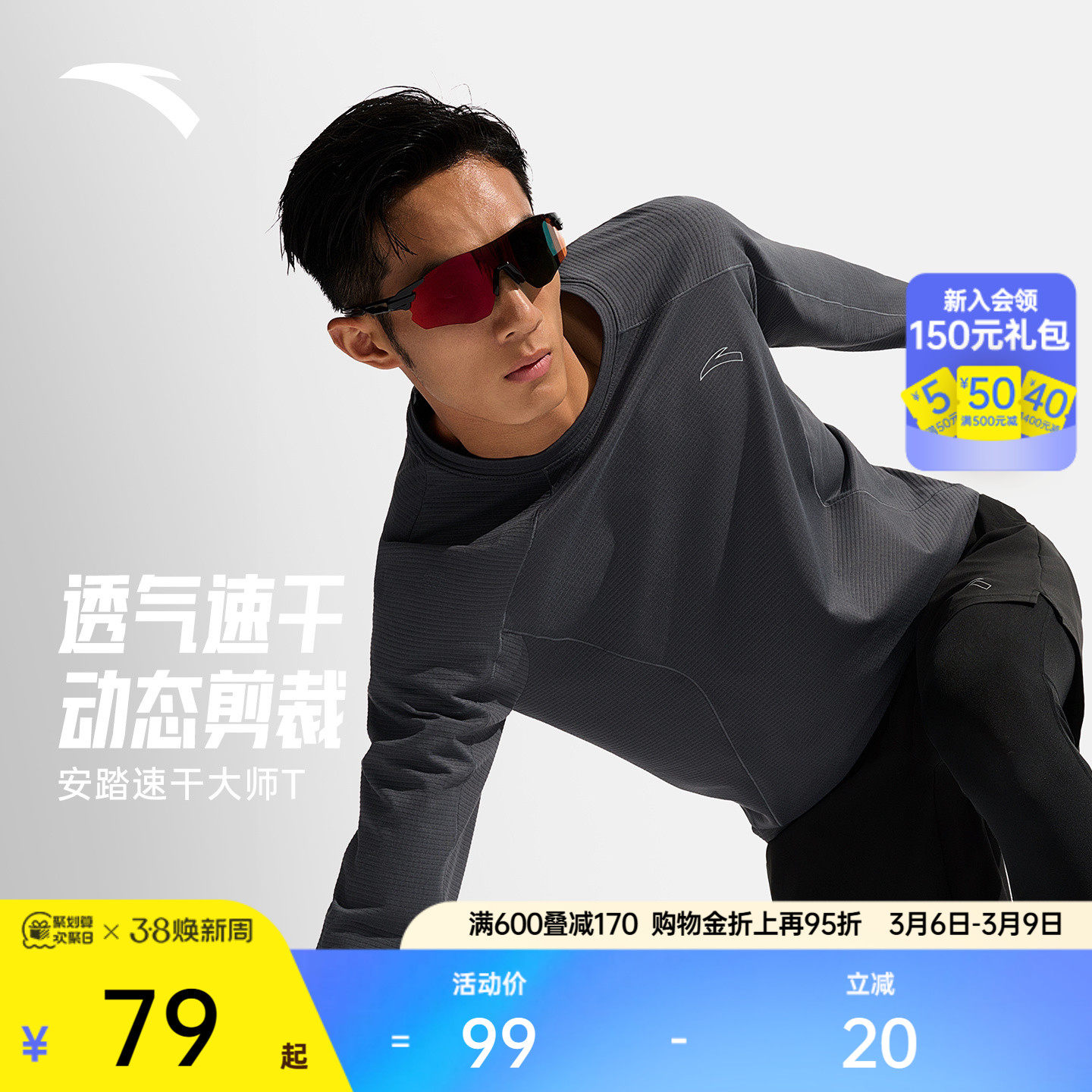 安踏速干大师丨长袖t恤男春季新款跑步运动上衣压缩衣健身训练服
