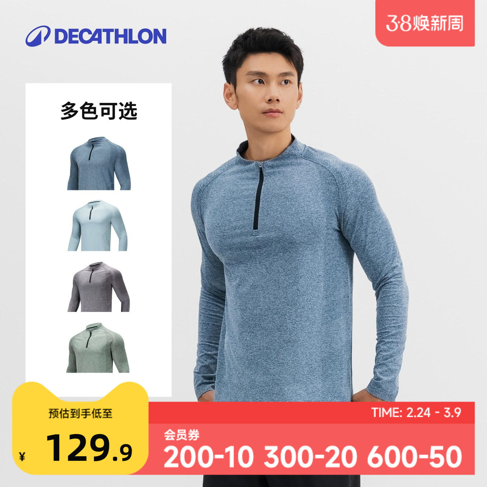 迪卡侬长袖速干衣男春春秋半拉链运动上衣T恤健身新款训练服SAL3