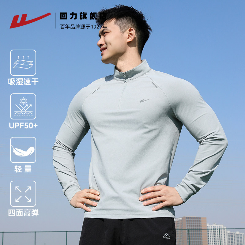 回力速干衣长袖T恤男士春秋季跑步半拉链健身训练服防晒运动上衣