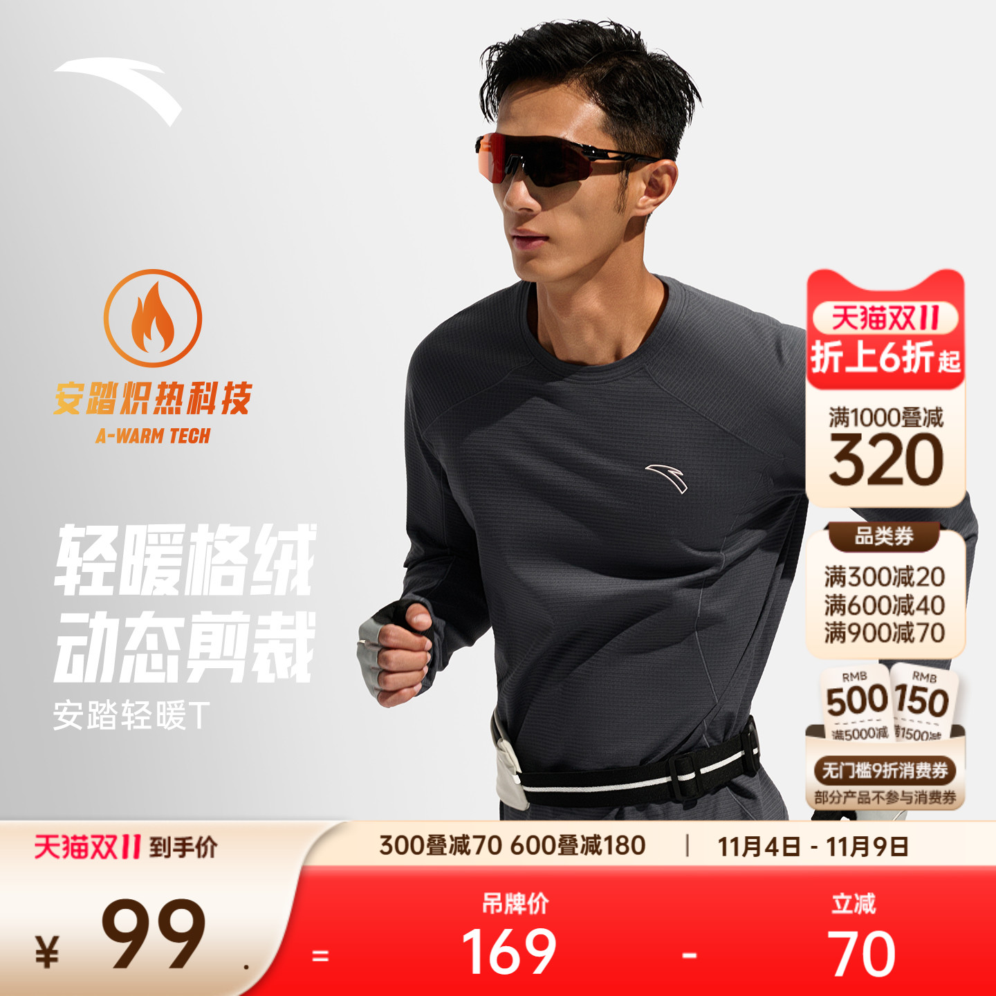 安踏轻暖T丨加绒跑步长袖t恤男士冬季保暖针织速干打底衫运动上衣