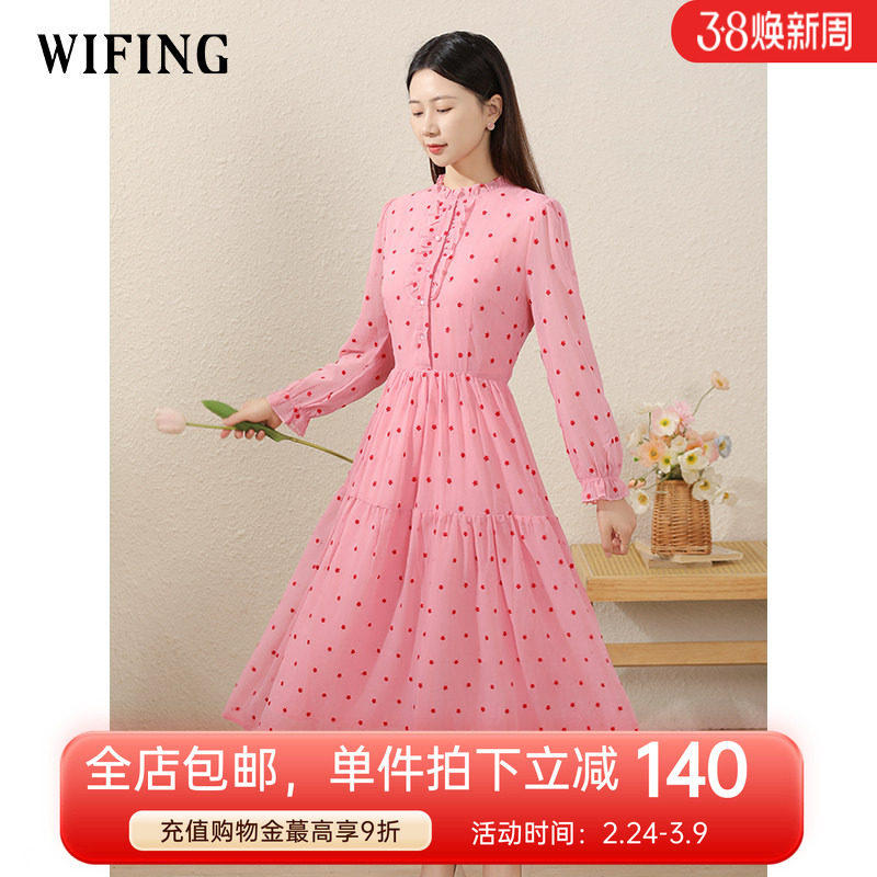未风粉色雪纺连衣裙女初春2026春季新款女装法式优雅气质收腰裙子