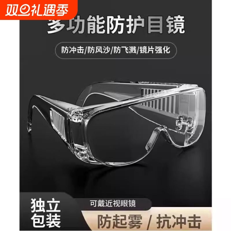 护目镜防灰尘不起雾骑行防风眼镜劳保防飞溅可戴眼镜打磨切割防雾