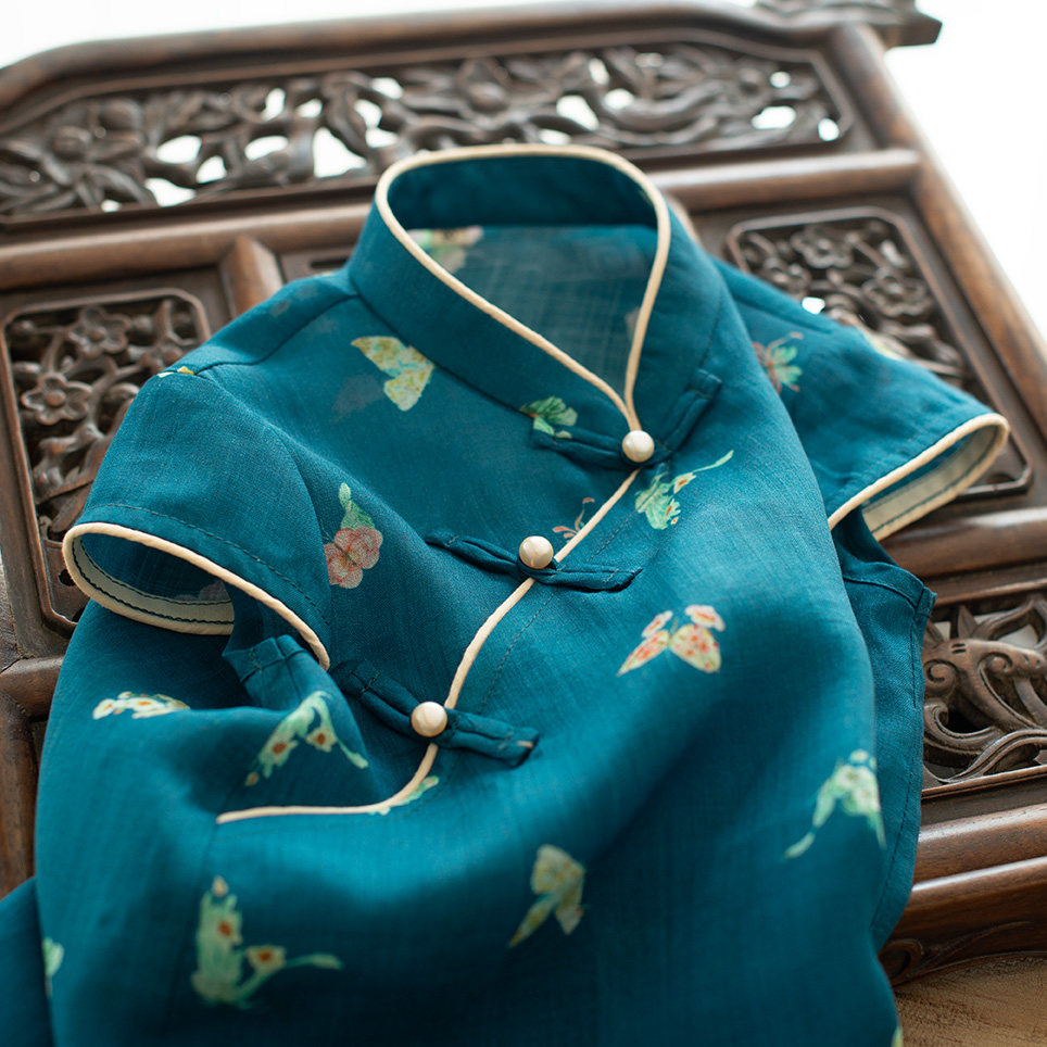 民族风春夏套装中式改良旗袍上衣复古盘扣棉麻唐装女装中国风汉服