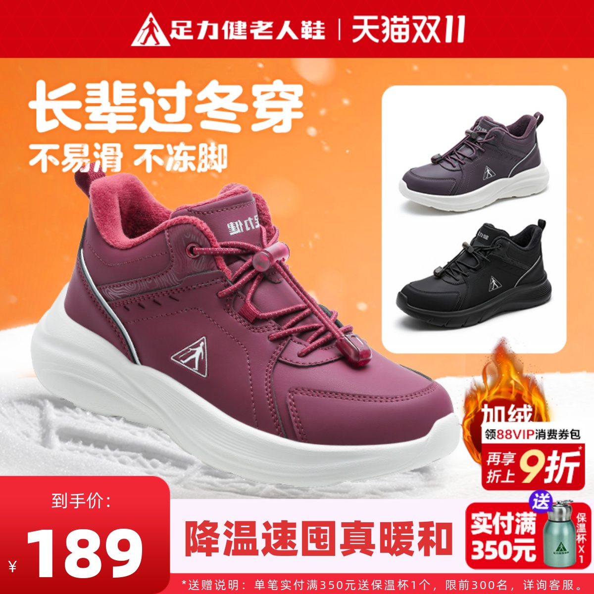 足力健老人鞋官方旗舰店正品保暖鞋女妈妈鞋冬季加绒软底奶奶棉鞋
