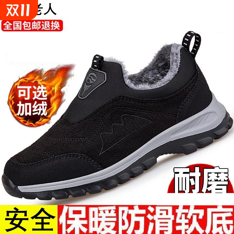 寿足力老人健步鞋中老年加厚加绒保暖男士舒适一脚蹬奶奶鞋棉鞋子