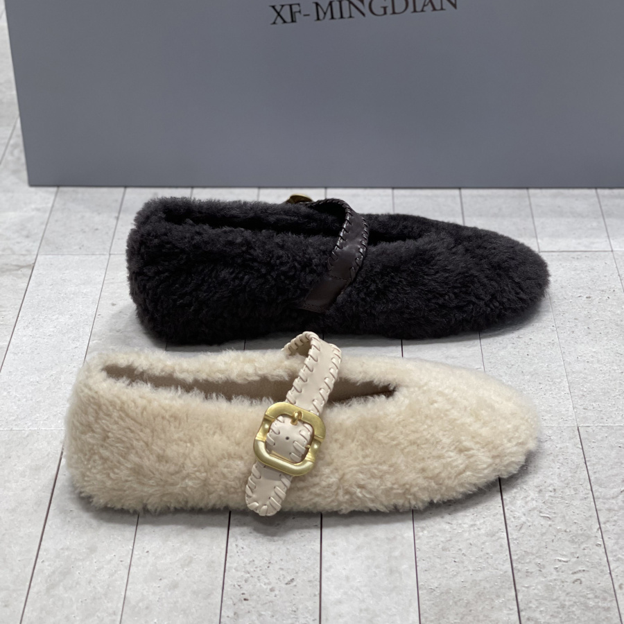 欧洲站女鞋2025冬季新款真毛羊毛一字带浅口平底加绒奶奶鞋棉鞋女