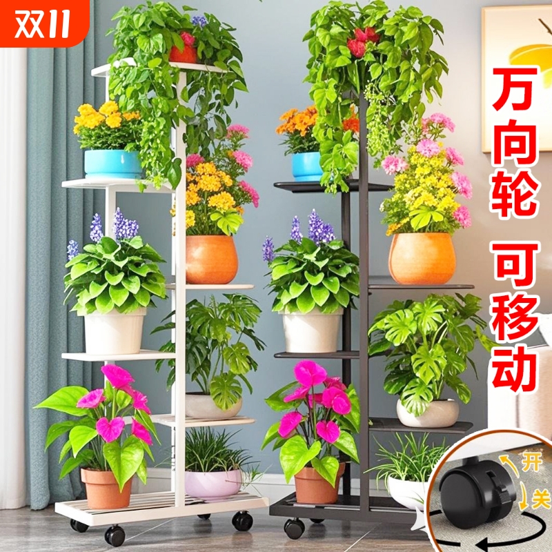 花架子客厅落地式植物多肉花盆托架铁艺多层可移动花架置物架阳台