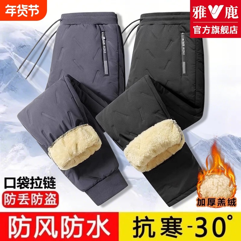 雅鹿男士保暖裤加绒加厚男款外穿束脚冬季防风羽绒棉棉裤休闲抗寒