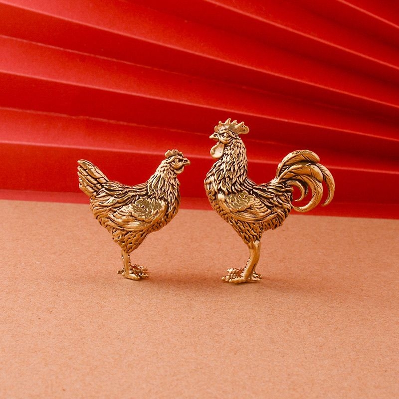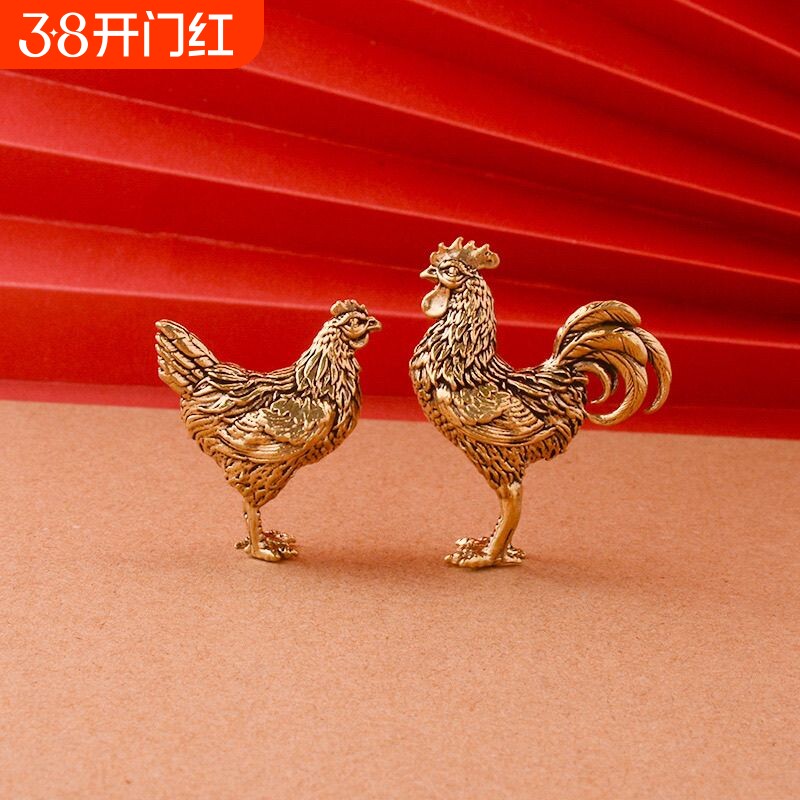 创意黄铜生肖鸡大公鸡摆件朝阳公鸡小母鸡家居客厅桌面茶宠装饰品