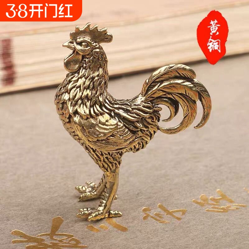 铜公鸡摆件黄铜福鸡手工艺品家居饰品纯办公室客厅桌面生肖圆底鸡
