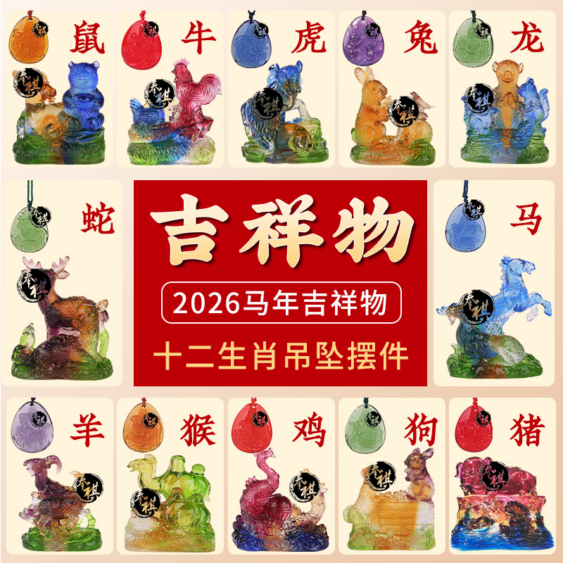 宋韶光2026马年吉祥物生肖鼠牛虎兔龙蛇马羊猴鸡狗猪琉璃摆件吊坠