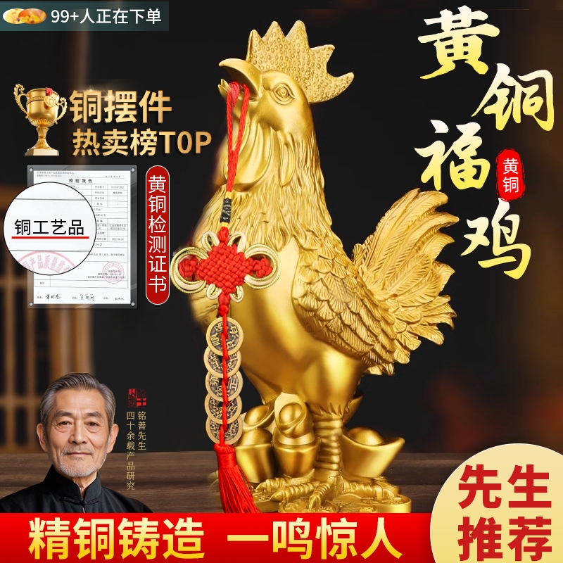 铜鸡摆件纯铜公鸡金鸡报喜元宝鸡十二生肖家居工艺品客厅卧室衣柜