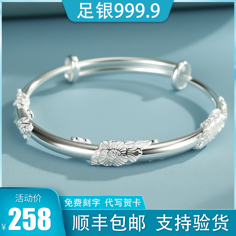 银手镯女纯银9999繁花似锦银镯子女款2025新款银首饰生日礼物女生