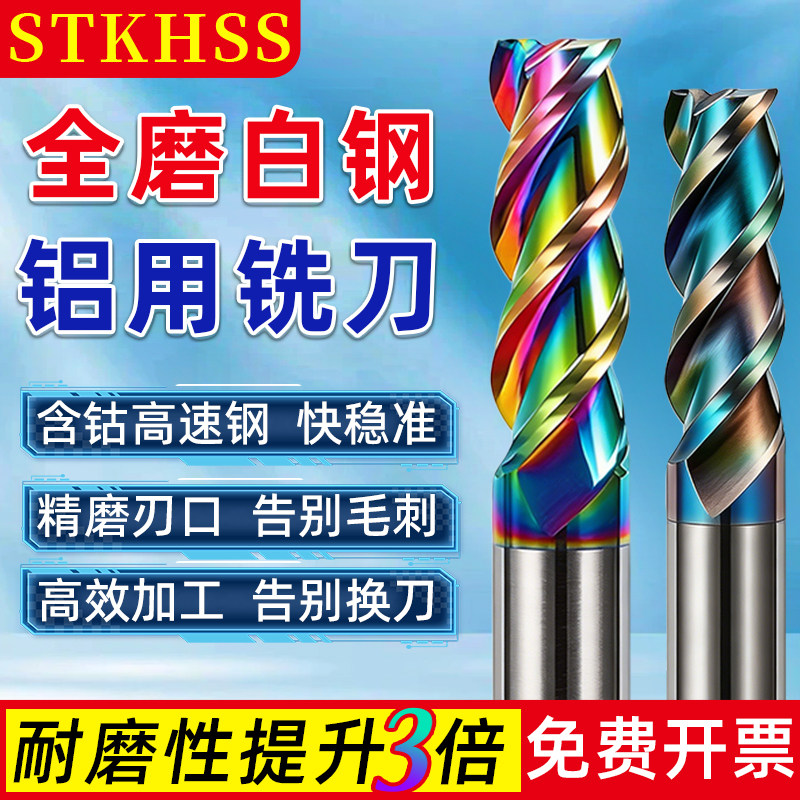3刃铝用立铣刀高速钢三刃数控全磨白钢洗刀高光高效数控刀具专用
