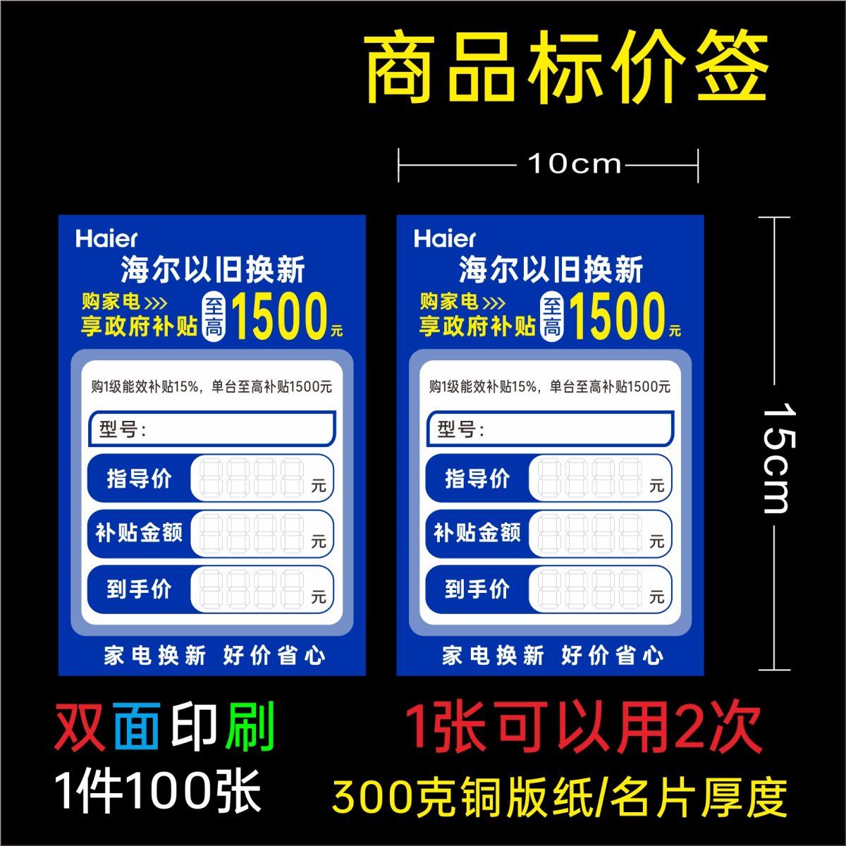 以旧换新标签新款家电以旧换新标价牌海尔补贴标价签手机标签定制