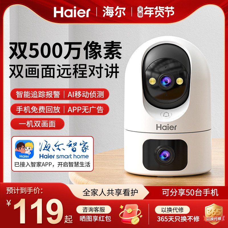 海尔2025新款监控器新型家用室内手机全景远程摄像头360度无死角