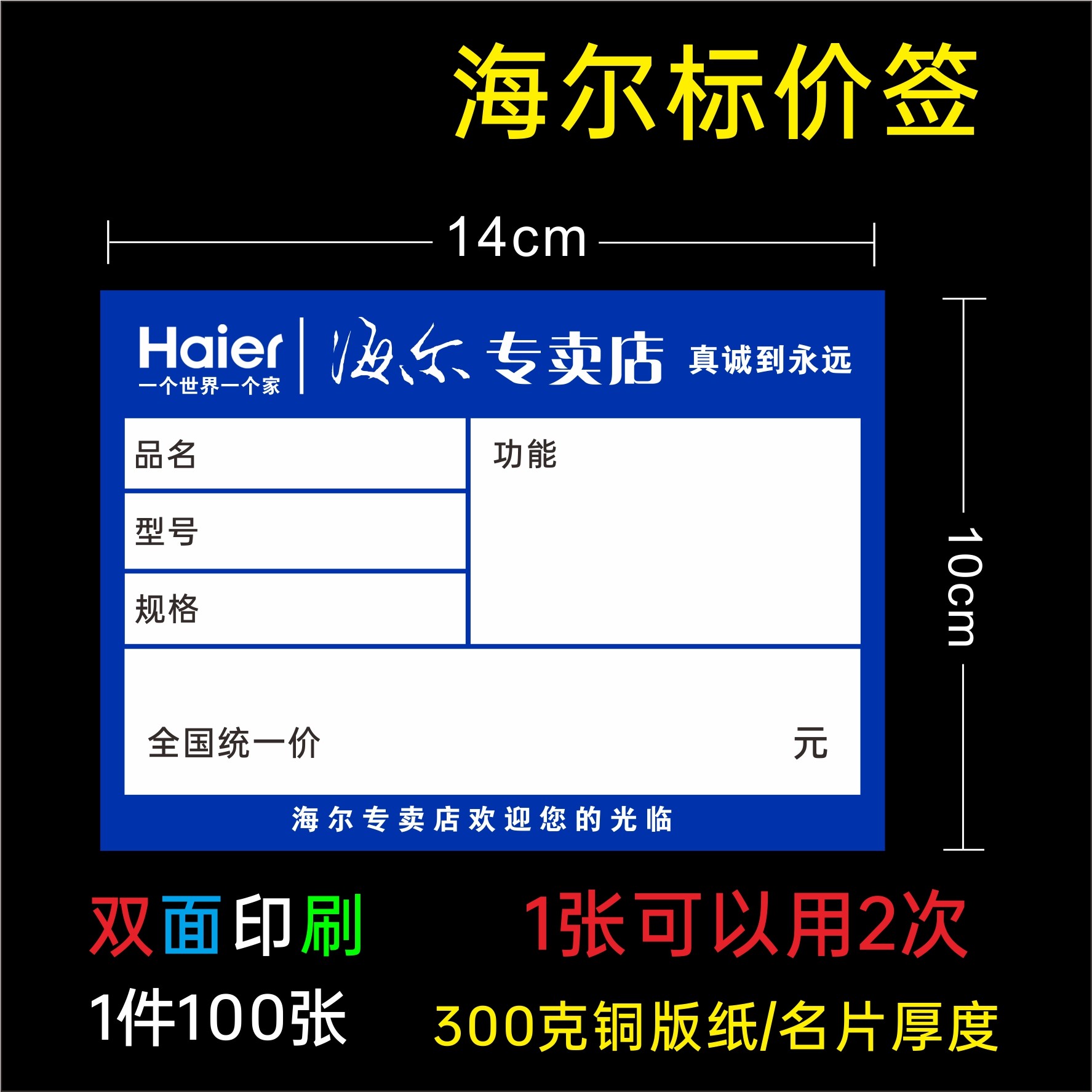 海尔标价签 价格标签纸14X10CM 海尔商品价格纸电器标签家电价钱