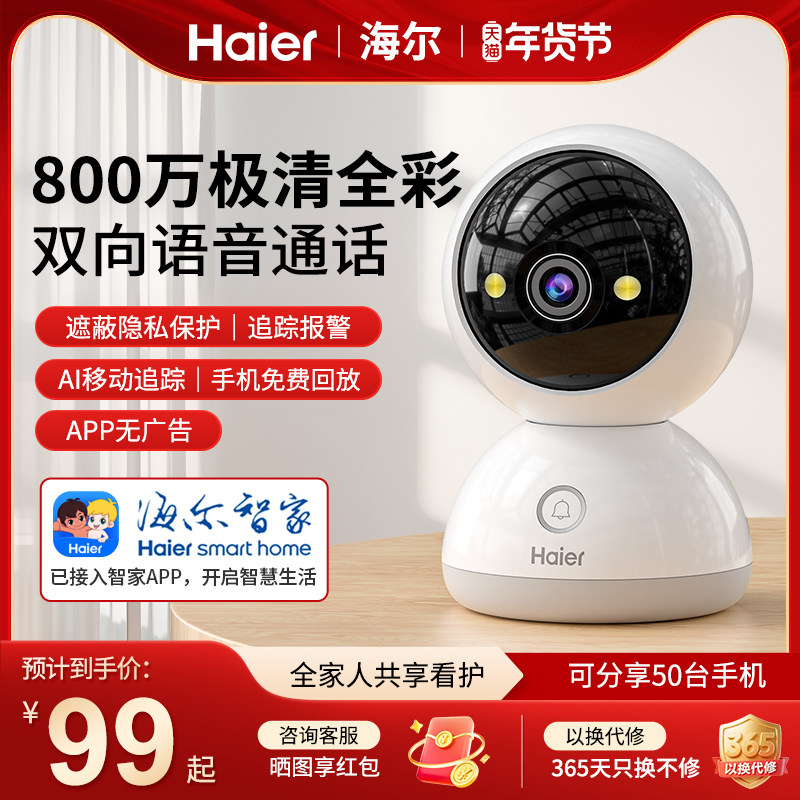 海尔360度无死角无线型摄像头室内外家用2025新款远程手机监控器