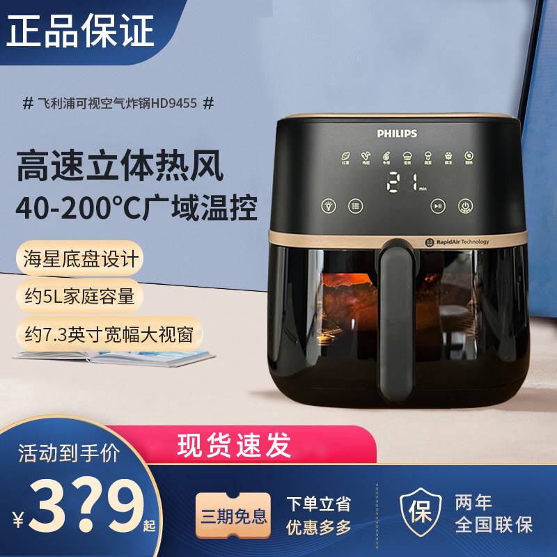 飞利浦空气炸锅HD9455可视炸锅机家用新款5L大容量多功能官方正品