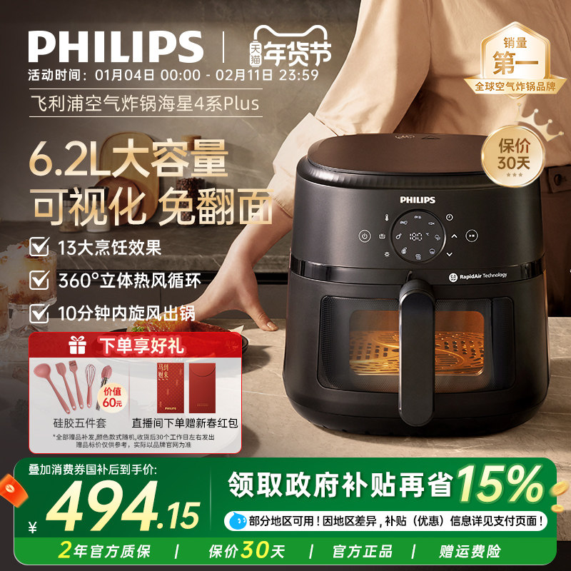政府补贴飞利浦空气炸锅可视家用小型多功能全自动电炸锅一体9362