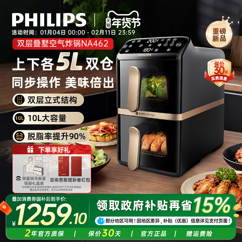 飞利浦空气炸锅全自动家用NA462可视化10L双仓大容量多功能