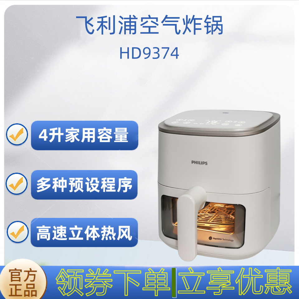 政府补贴飞利浦空气炸锅家用小型迷你可视官方电炸锅旗舰店HD9374