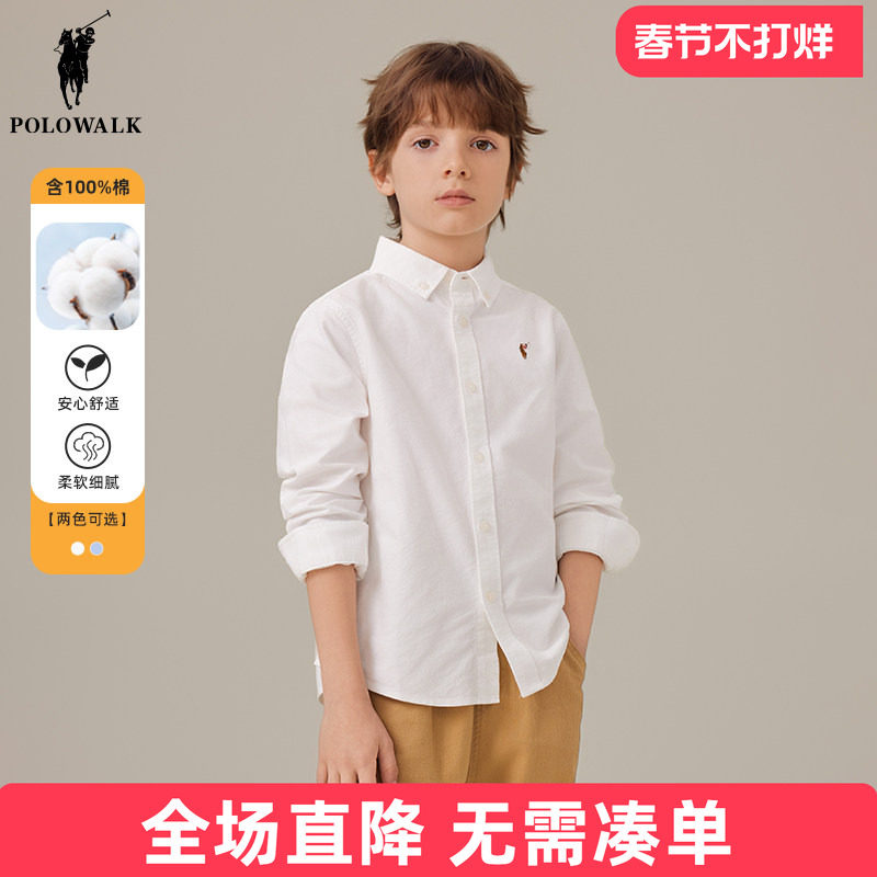 polowalk童装 长袖衬衫男童衬衣2025春秋新款翻领棉打底衫保罗