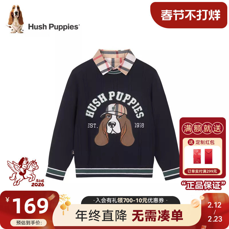 POLOWALK童装 男童假两件红色毛衣秋冬装儿童衬衫领拼接针织衫
