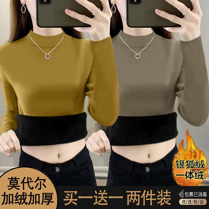 - 加绒加厚打底衫 女 冬 长