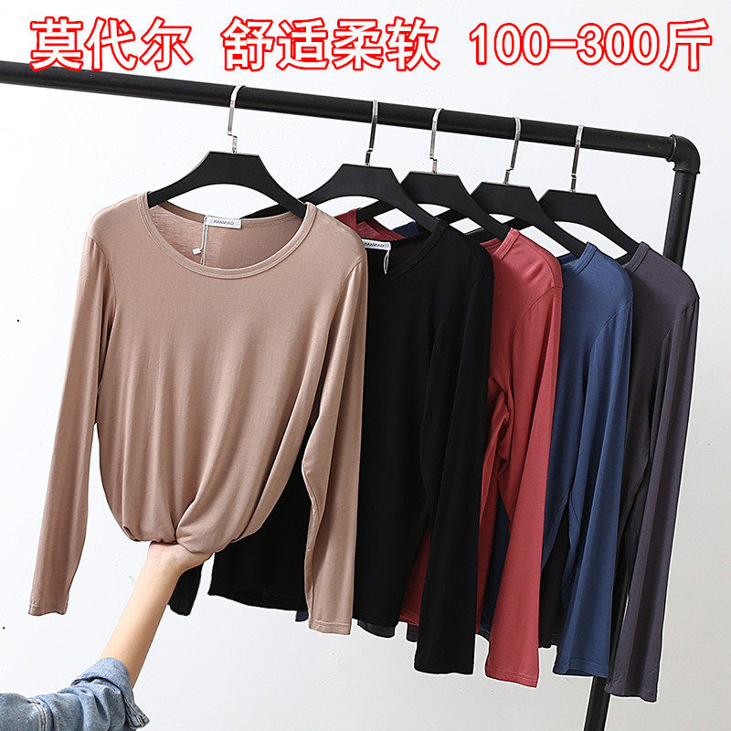特大码200斤300长袖T恤打底衫加肥莫代尔春秋衣薄款圆领上衣女装