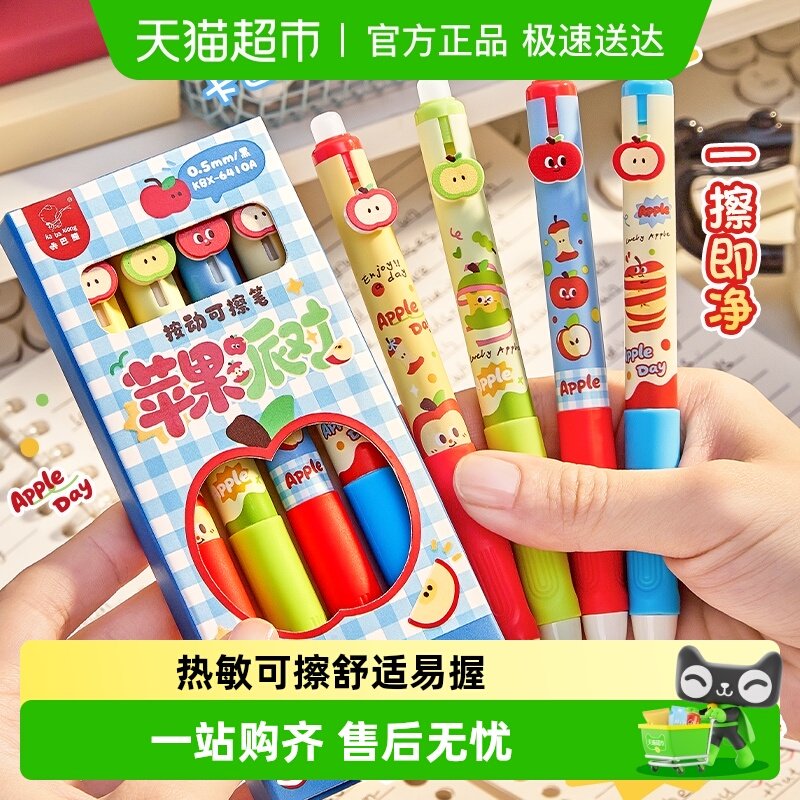 咔巴熊正姿可擦笔小学生专用热可擦按动中性笔男女孩软握黑色晶蓝