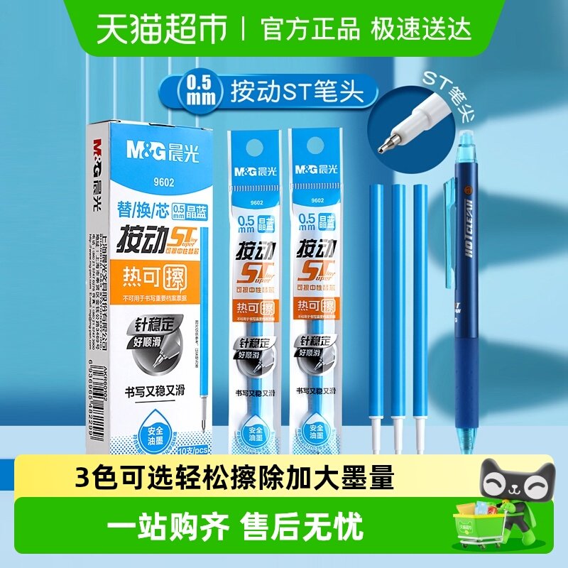 晨光正品热可擦中性笔按动替芯晶蓝黑色笔芯0.5mmST笔头大容量魔力易摩磨擦签字笔小学生专用学习用品文具