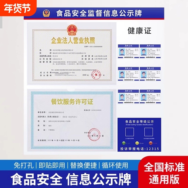 营业执照框架挂墙食品安全信息公示栏健康许可证卫生放餐饮展示板