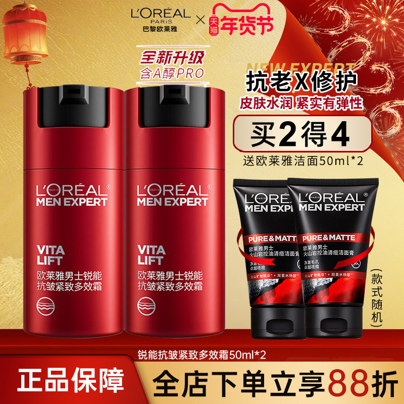 欧莱雅男士锐能抗皱紧致多效霜 男士乳液面霜护肤品补水保湿抗老