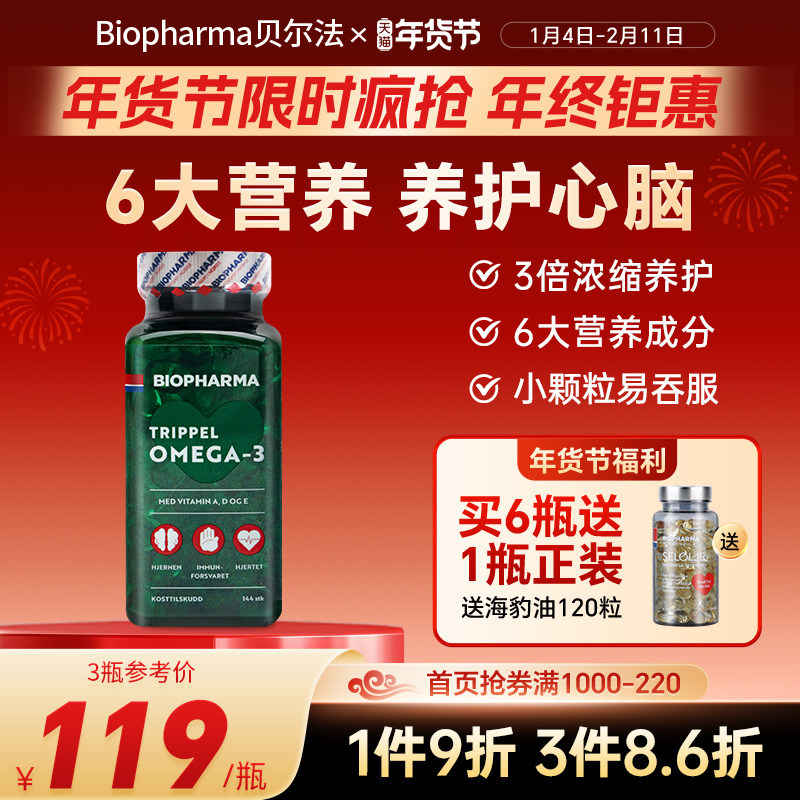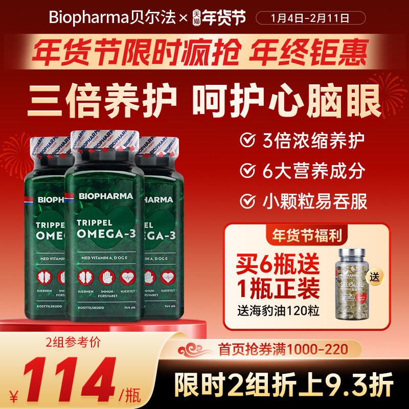 挪威BP biopharma贝尔法三倍深海鱼油软胶囊中老年Omega3鱼油*3瓶