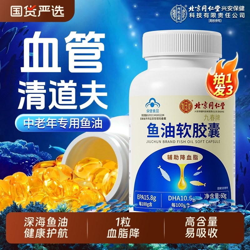 北京同仁堂深海鱼油软胶囊中老年成人omega3降血脂鱼肝油官方正品