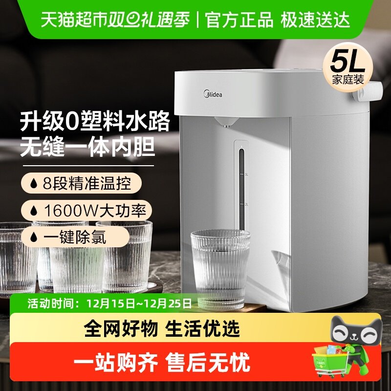 美的5L大容量电热水瓶新款家用智能多段恒温热水壶不锈钢官方正品