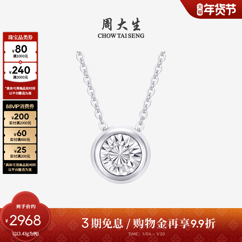 周六福铂金项链女pt950白金o字链素链锁骨链官方新年礼物旗舰店