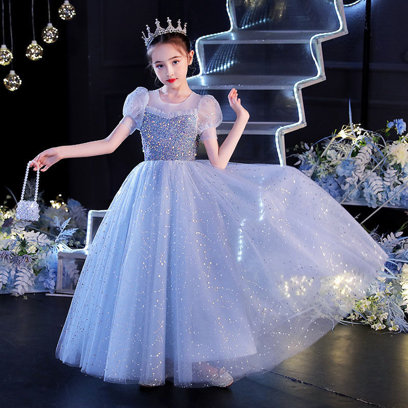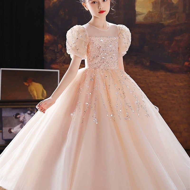 儿童高端公主裙女童蓬蓬纱花童婚纱小女孩钢琴演出服大码礼服生日