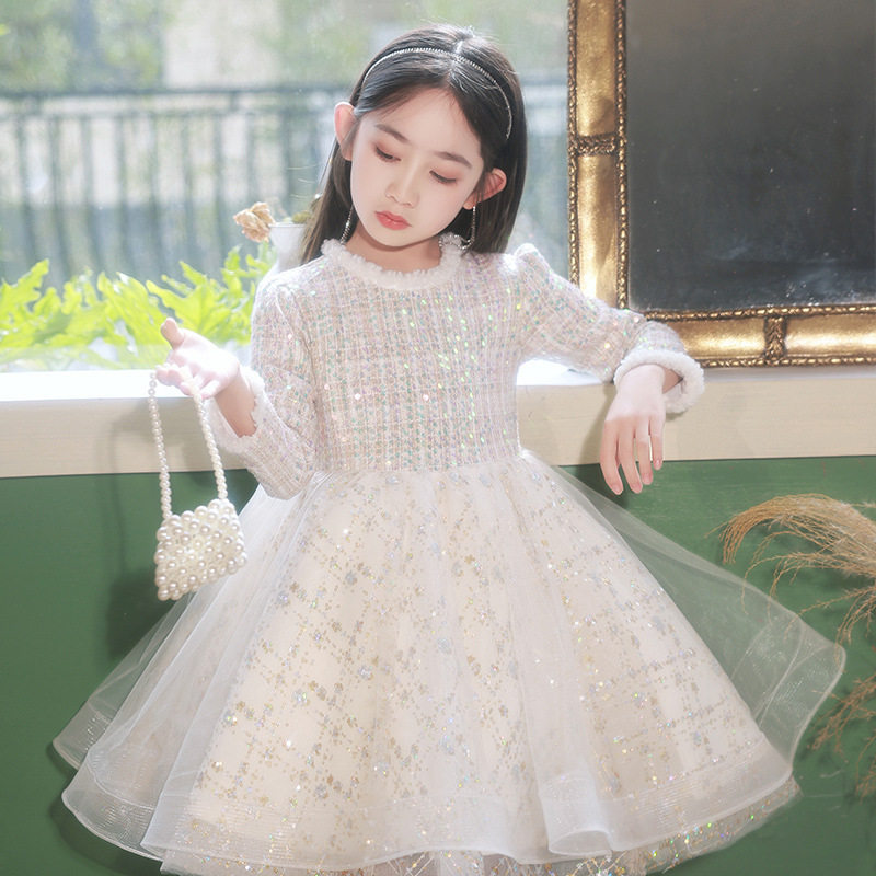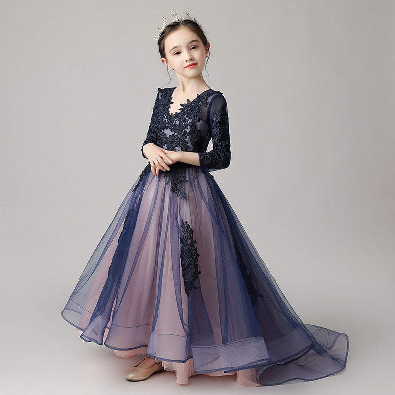 大码礼服中大童生日钢琴主持人演出服花童小女孩蓬蓬裙公主裙长袖