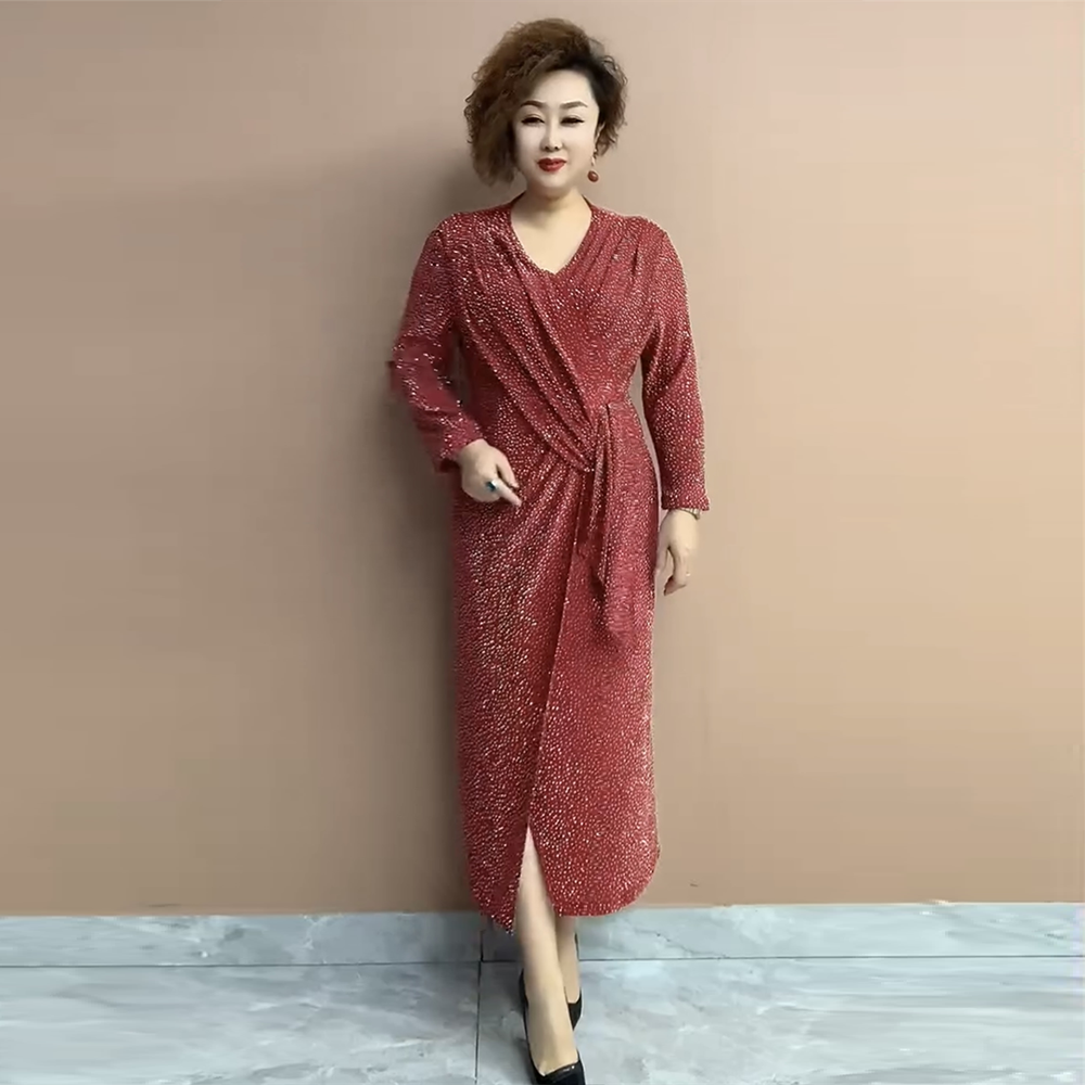 气质减龄时尚连衣裙中年妈妈弹力显瘦大码长款年会大码礼服连衣裙