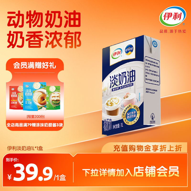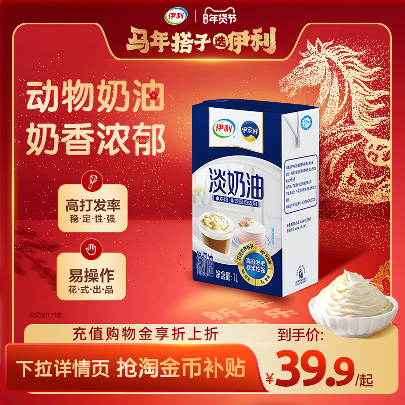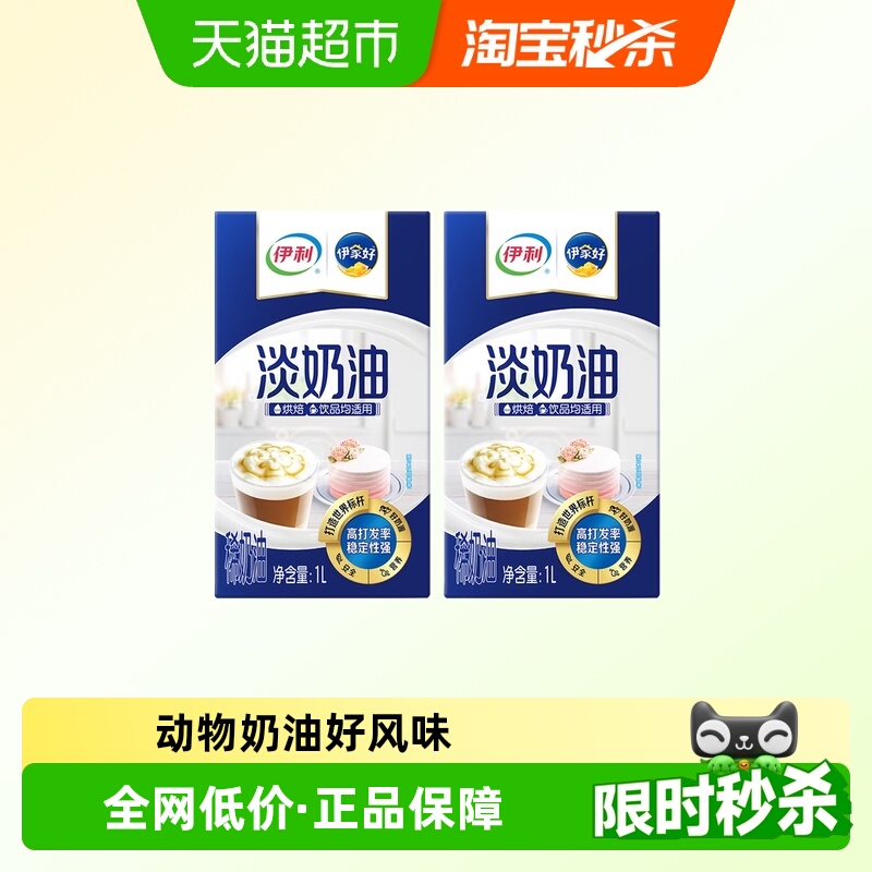 伊利淡奶油1L烘焙饮品专用动物性淡奶油蛋糕裱花蛋挞奶盖动物奶油