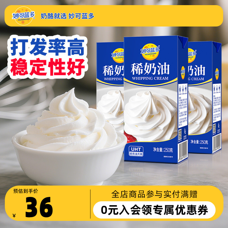 英国蓝风车淡奶油家用蛋糕烘焙材料蓝米勒稀奶油动物奶油26.3.3