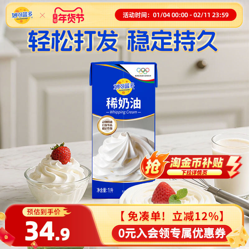 妙可蓝多稀奶油1L大盒装家庭烘焙专用原料蛋糕动物奶油甜品淡奶油